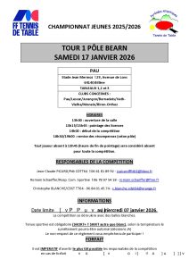 Convocation Tour 1 Chpt Jeunes pôle Béarn du 17 janvier 2026