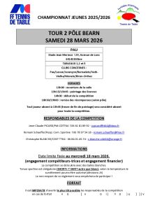 Convocation Tour 2 Chpt Jeunes pôle Béarn du 28 mars 2026